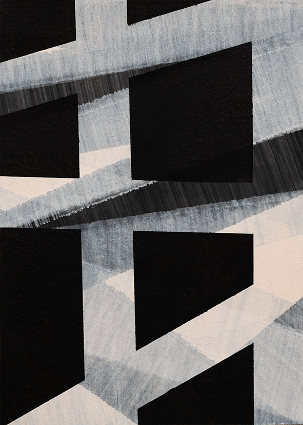 Kleine Kompositionen, 2019, Mischtechnik auf Bütten, je 21 x 15 cm