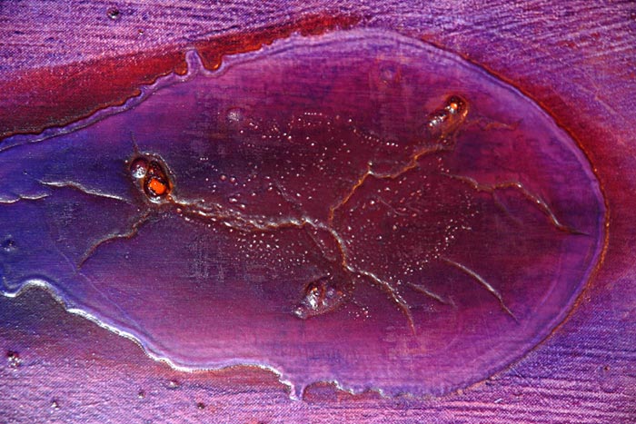 Seine Verlauftechnik durch Muldenbildung in der locker gespannten Leinwand ließ Farblandschaften entstehen, die in sich fließend, mutierend und bewegt erscheinen. Bis in den Trocknungsprozess wahrten die Farben Eigenleben: Relief-, Haut- und Rissbildungen, aber auch körperhafte Gebilde entstanden durch das eigenständige Weiterwachsen der sich sammelnden Farben. Faszinierende Farbverläufe, subtilste Abstufungen und räumliche Effekte geben den hochformatigen Tafelbildern eine sehr lebendige, tiefgründige Sprache.